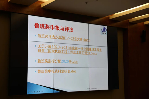 7月18日,集團公司邀請了中國江蘇國際技術(shù)合作集團有限公司總工程師兼設(shè)計院院長、技術(shù)信息中心主任研究員級高級工程師唐來順和江蘇邗建集團有限公司副總經(jīng)理、江蘇省安裝協(xié)會副會長、正高級工程師徐子根兩位專家親臨授課?;顒佑杉瘓F公司高級顧問王占聿主持,魯班獎創(chuàng)建小組成員和項目部相關(guān)人員參加了此次培訓(xùn)。宿遷市建筑業(yè)協(xié)會秘書長丁方瑞受邀參加。