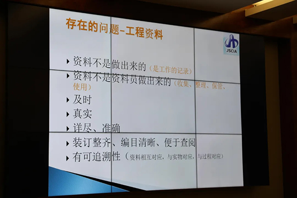 徐子根重點介紹了安裝工程創(chuàng)優(yōu)策劃與實施措施。他強調(diào),要重視創(chuàng)建資料和施工日志的重要性,必須做到具有追溯性和準確性。并以實物為例,剖析了屋面安裝工程的施工難點和重點。